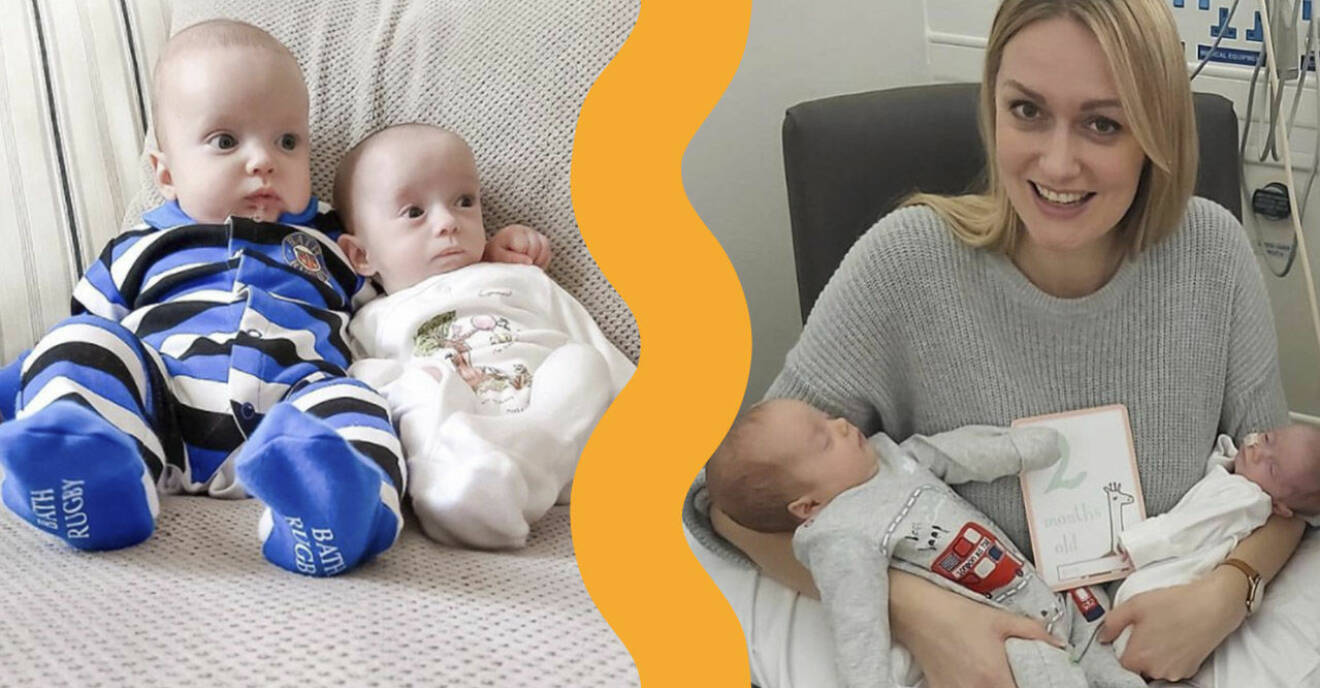 För Rebecca blev graviditeten som en vanlig tvillinggraviditet – i vecka 33 födde hon båda barnen, i september förra året. Men eftersom dotter Rosalie egentligen är flera veckor yngre än sin tvilllingbror Noah så är det stor storleksskillnad. Hon märker också att det är skillnad på vart de är i utvecklingen.