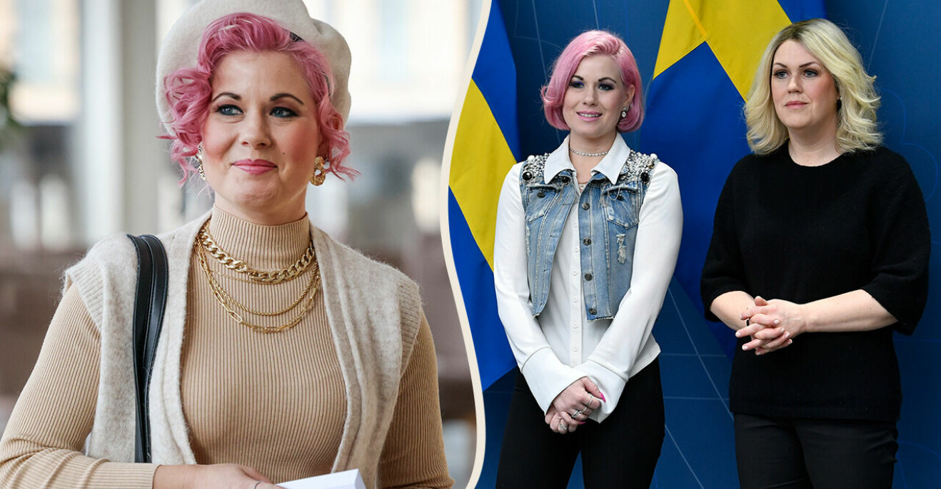 Melinda Jacobs tillsammans med tidigare socialministern Lena Hallengren efter en pressträff i februari. Vid pressträffen presenterade dåvarande regeringen de föreslagna lagändringarna i samband med Lex lilla hjärtat.